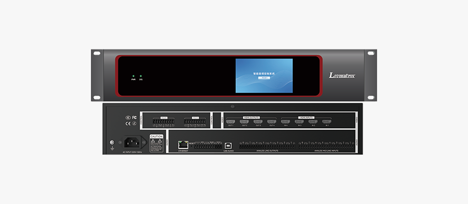 ◆ 采用一体式设备设计,集音频处理器、视频矩阵、中央控制于一体。 8进8出音频矩阵。