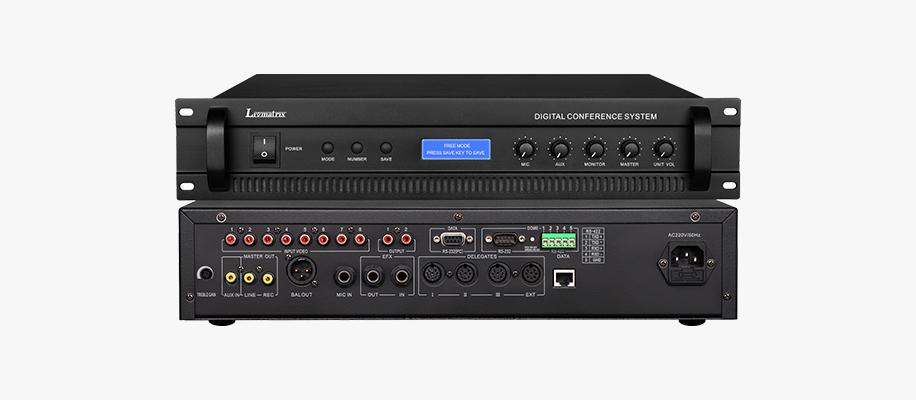 ◆频率响应:100Hz—18KHz:总谐波失真:在100Hz—18KHz会议系统声音输出小于0.1%