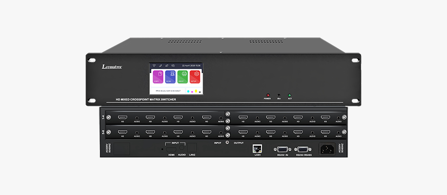 b.(标配)装有蓝色液晶显示屏,显示矩阵的工作状态(如查看输出输入通道的对应关系)