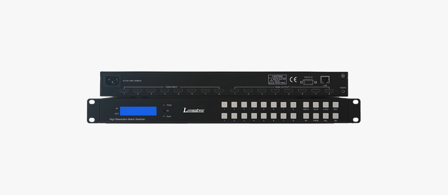 ◆ 前面板LCD状态显示,可显示设备各通道的切换状态