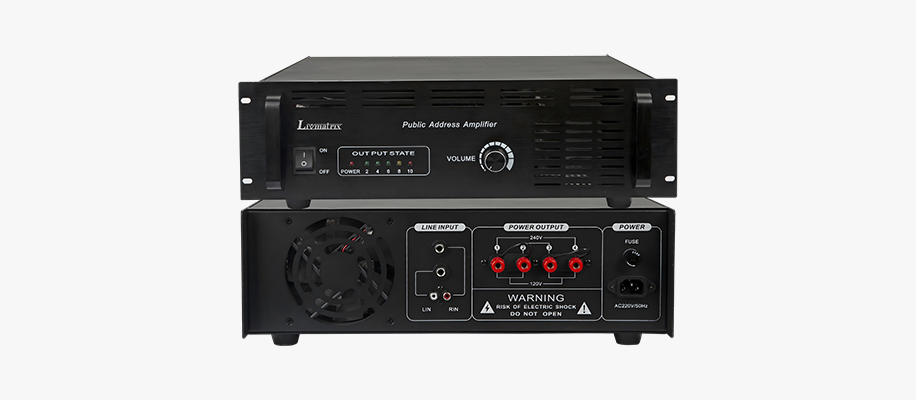 ◆ 纯后级功放:3U标准机型。◆ 输出定压120V或240V可切换,自动强风散热,有过载过热短路保护带声光报警,设有5段电平指示检测功放当前工作状态。◆ 机身尺寸(480mmx460mmx132mm) 面板颜色分黑白两种。